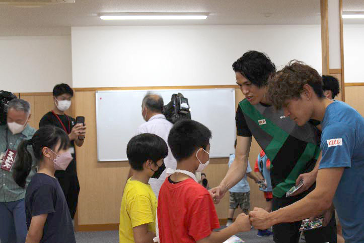 クライマーの楢﨑智亜選手、楢﨑明智選手、渡部桂太選手(MC兼任)が目の前に!