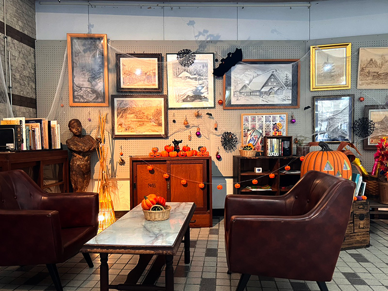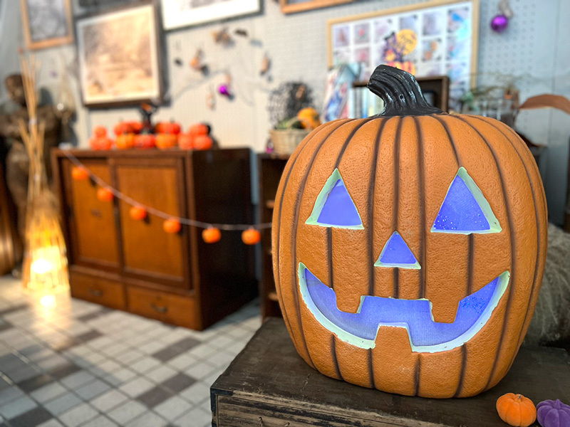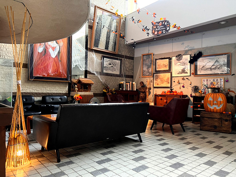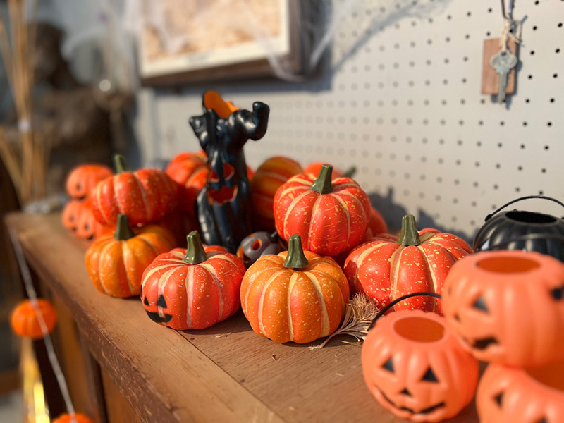 奥に進むとかわいいハローウィンの飾りつけ!