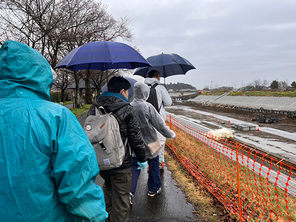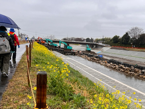 「第1回永野川改良復旧工事現場見学会 永野川沿い堤防ウォーキング」に参加の様子