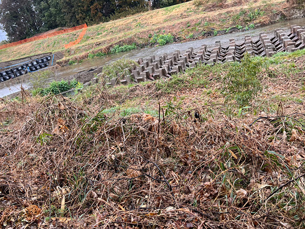 雑草が生えてるところは堰が出来上がった後に綺麗にするそうです。