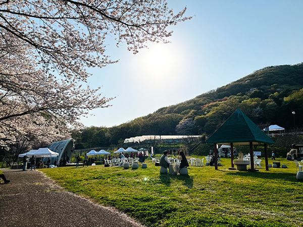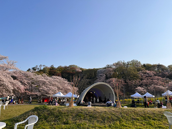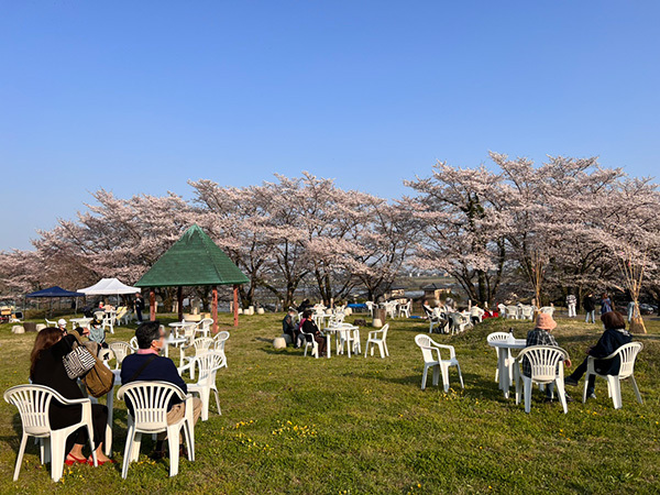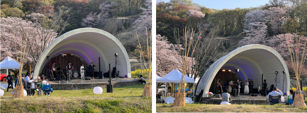 ライトアップされた桜とジャズを聴きながら過ごす夜はいいですね。