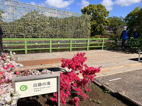 西ゲートから入るとつつじと大長藤が出迎えてくれます。