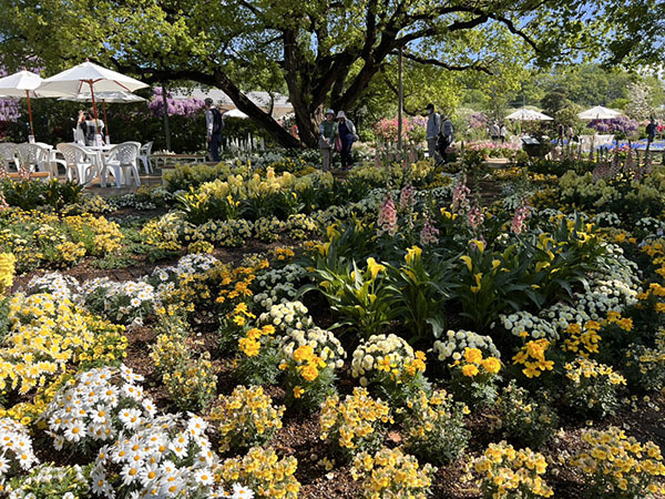 この時期の花たちが色を分けて咲いているガーデンがあります。