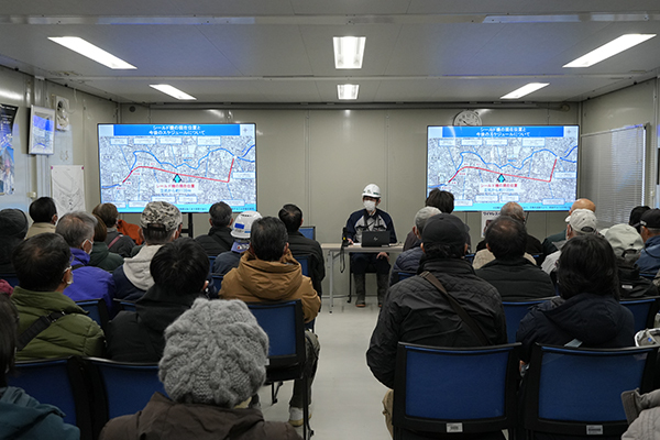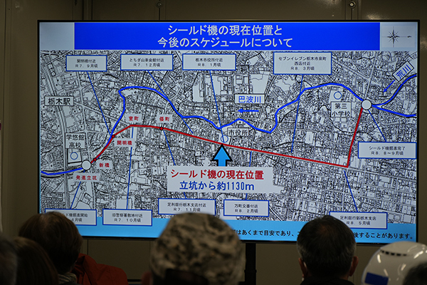 トンネルのルートについての説明では、現在は巴波川の下流から掘り進め、上流へ向かって工事が進行していることが紹介されました。