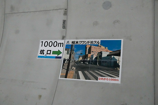 トンネル内には「何メートル進んだか」「地上ではどのあたりか」が分かる写真が掲示されていました。