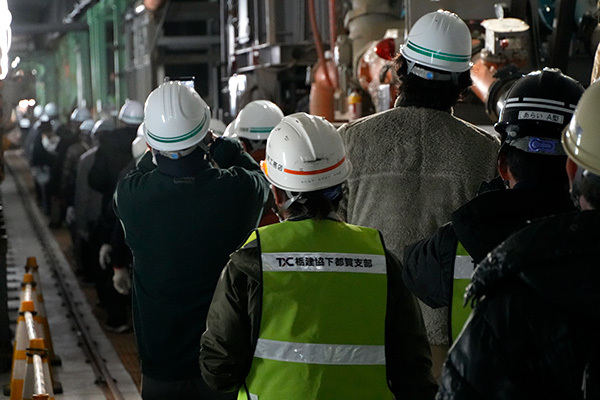 参加者の皆さんは休むことなく歩き続け、ついにシールドマシンへ到着。