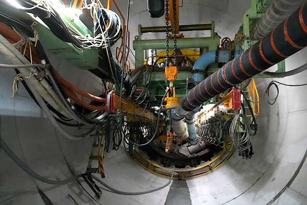 シールドマシンが進むのに合わせて、周囲の機材も一体となって移動します。