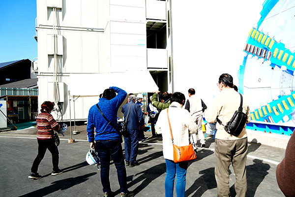 初めて目にする巨大なシールドマシンに驚きの声が上がり、記念撮影をする姿も多く見られました。