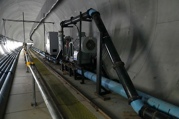 距離が長いため、途中には押し出すための装置も設置されているそうです。