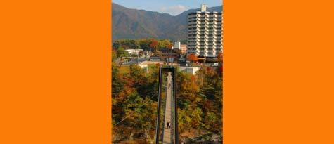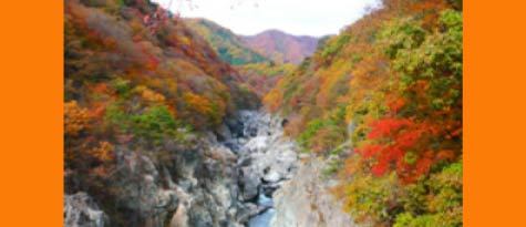 鬼怒川温泉と川治温泉の中間点に位置する龍王峡渓谷。渓谷に架かる「虹見橋」「むささび橋」からは龍王峡最高の眺めが望める。紅葉の時期は、一番人気のスポットで、渓谷美と紅葉を一度に見ることができ、マイナスイオンもたっぷり。両岸には歩道も完備されており、大自然の中での紅葉を、身体中で感じることのできる場所。