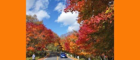 鬼怒川温泉と塩原温泉を結ぶ約28kmの道路。標高差があるため長い間紅葉を楽しむことができる。道路左右に赤や黄色、橙色の美しい紅葉風景が広がり、秋を満喫しながらのドライブが楽しめる。