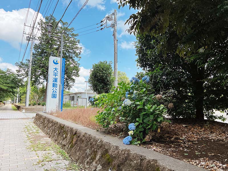 さくら通り沿いにガクアジサイと西洋アジサイ、公園内にもあじさいが咲いています。