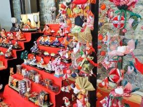 こどもの健やかな成長を願う雛まつり。椿や兎や毬、縁起の良い一つ一つ手作りのつるし飾りで会場が華やかに彩られる。