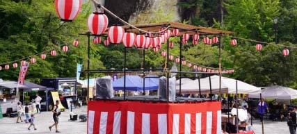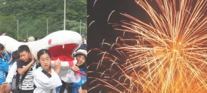 盆踊りを開催するほか、花火大会ではスターマインや尺玉も打ち上がり、会場は大いに盛り上がる。子どもに人気の商工会青年部のこんにゃく流しそーめん大会や、木工広場、こんにゃく手作り体験あり。