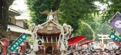 八百有余年の歴史と伝統がある例大祭。祭りに花を添えるのは、三町目の獅子舞及び総数14台の奉納山車、そして、この山車に乗った下座連によって奏でられる「潮来ばやし」。