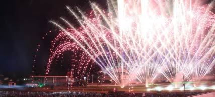 豊かな自然に囲まれた「モビリティリゾートもてぎ」のサーキットを舞台に、鮮やかな花火が音楽に合わせて目線の高さと上空の2画面で打ちあがる劇場型花火を鑑賞できる。花火を手がけるのは、全国花火競技大会において優勝・上位入賞の常連で、創業150周年を迎える「菊屋小幡花火店(群馬県)」。