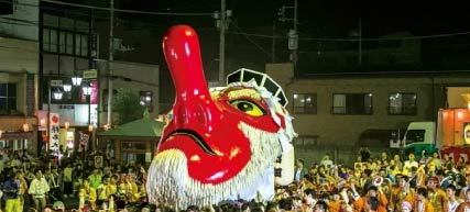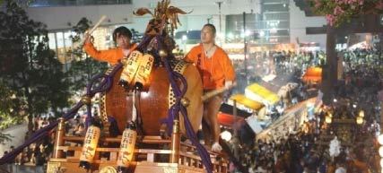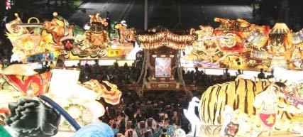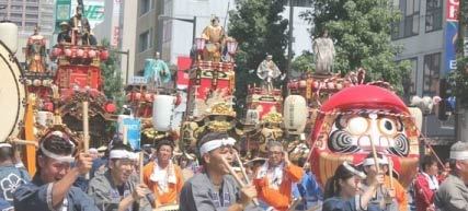 今市の中心部の地区に保存されている彫刻屋台と花屋台が、JR今市駅前通りに繰り出し、“ぶっつけ”と呼ばれるお囃子の競演が披露される。間近で見る各町内の屋台は、迫力満点!