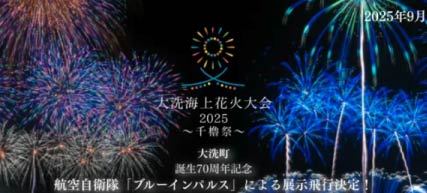 大洗のまつり実行委員会は、2025年9月27日(土)、茨城県・大洗サンビーチにおいて『大洗海上花火大会2025 ~千櫓祭(せんやぐらさい)~』を開催します。